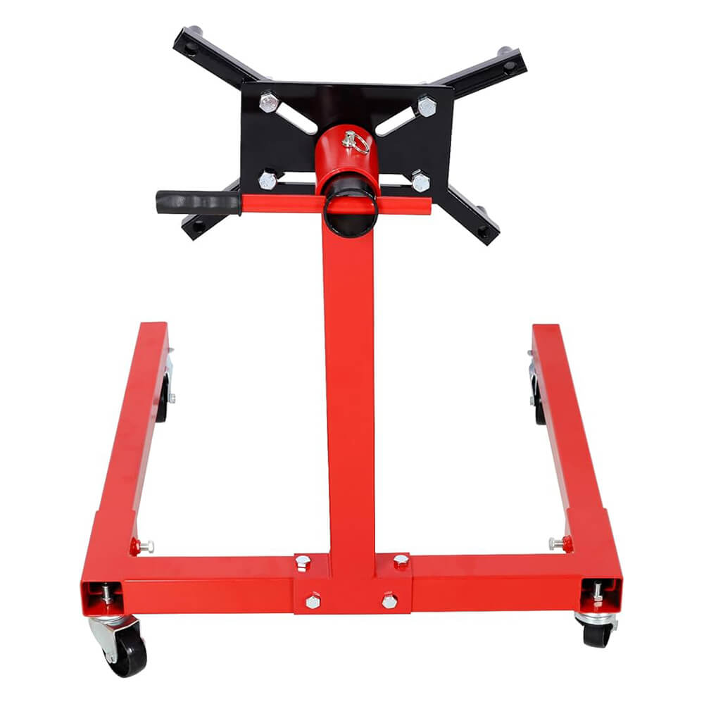 Благодарение на 360-градусовата въртяща се глава можете да позиционирате двигателя точно както ви е удобно, а регулируемите монтажни рамена позволяват работа с различни типове агрегати. Лесното придвижване и заключване чрез четири стабилни колела гарантира безопасност и мобилност дори в натоварен сервиз.