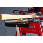 Благодарение на регулируемата височина от 68 до 110 см, стойката лесно се адаптира към всички стандартни работни и машинни маси, което я прави идеална за циркуляри, абрихти, банциг и други дървообработващи машини.