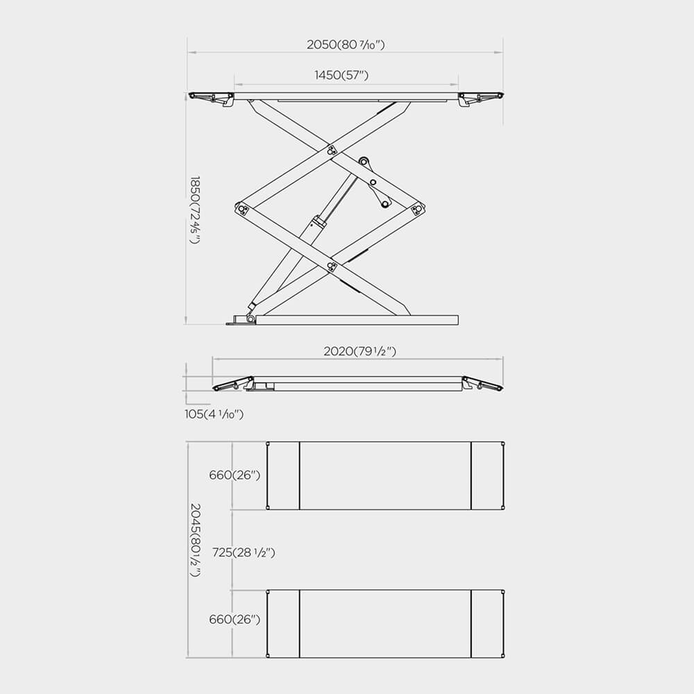 • Дължина на платформите: 1450 мм (2050 мм с заключени рампи)