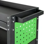 Количката разполага с отворена горна табла, просторно чекмедже и два допълнителни долни рафта, което позволява оптимална организация на инструменти, консумативи и оборудване. Благодарение на въртящите се колела със заключващ механизъм, придвижването е лесно и безопасно върху различни повърхности.