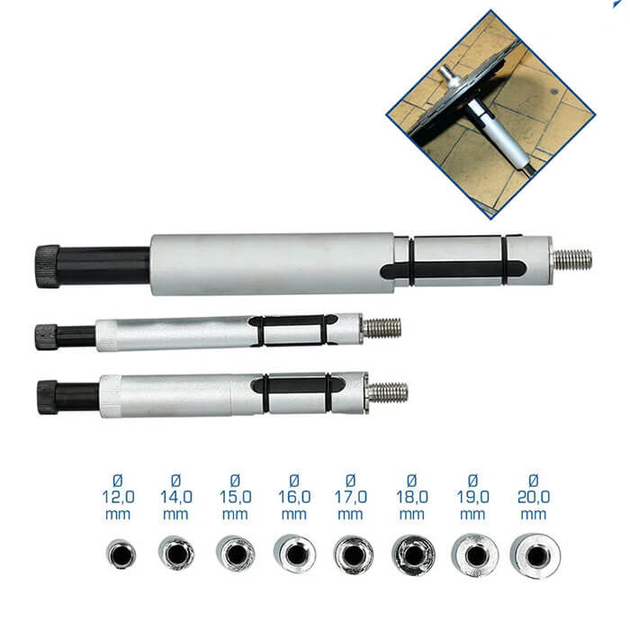 Комплектът включва 8 прецизни стоманени втулки и 3 разширяващи се водача.