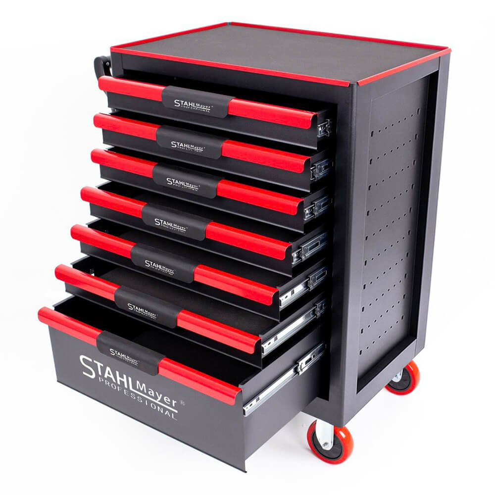 Независимо дали сте професионалист или ентусиаст с домашна работилница, количката за инструменти STAHLMAYER Red Line ще ви осигури надеждност, сигурност и организация на най-високо ниво.