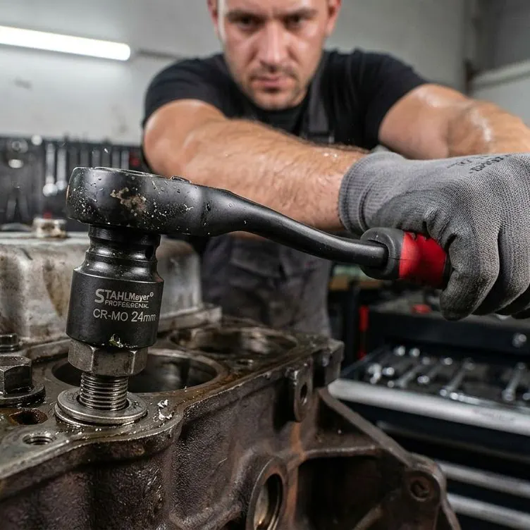 Професионален комплект от марката STAHLMAYER, включващ ударни ковани вложки и инструменти, предназначен за ежедневна тежка работа в автосервизи, работилници и за домашни майстори, които търсят надеждност и издръжливост.