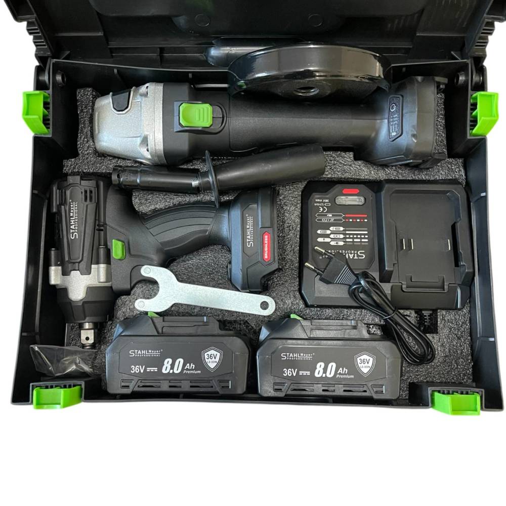 Комплект 2в1 StahlMayer ударен комбиниран гайковерт и ъглошлайф 36V 8.0Ah