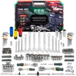 Професионален комплект вложки и битове 222 части ROCKFORCE – изключителна издръжливост благодарение на хром-ванадиевата стомана.