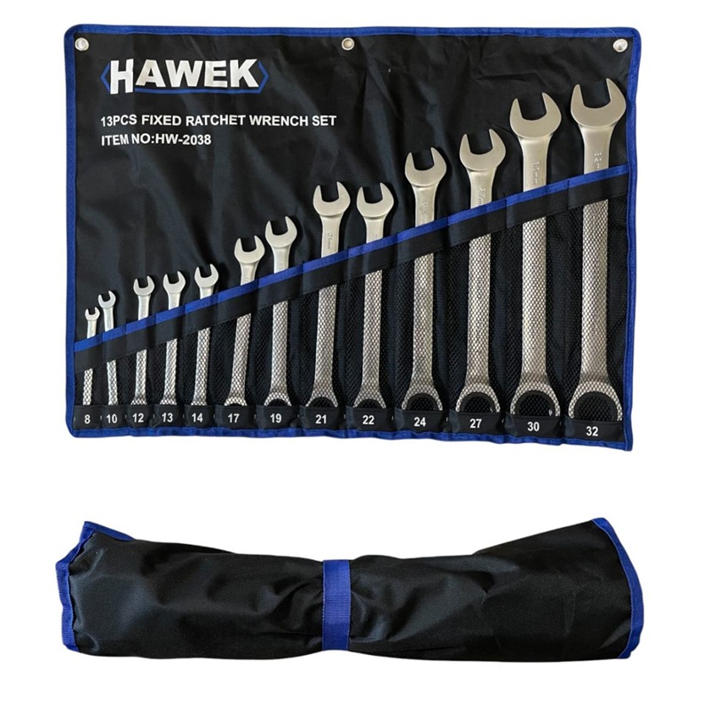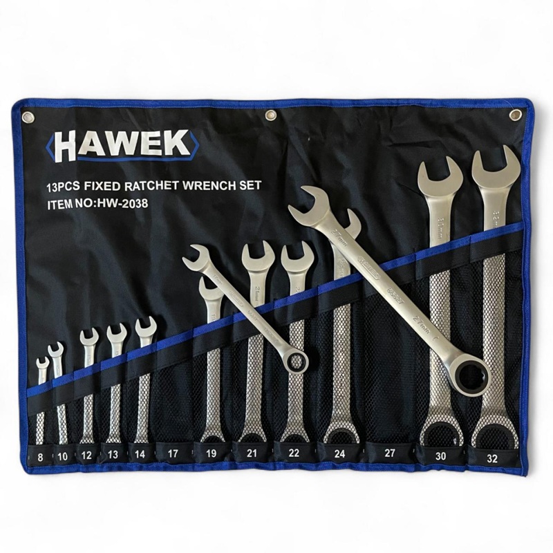 Комплект звездогаечни тресчотни ключове 8-32 мм 13 части HAWEK