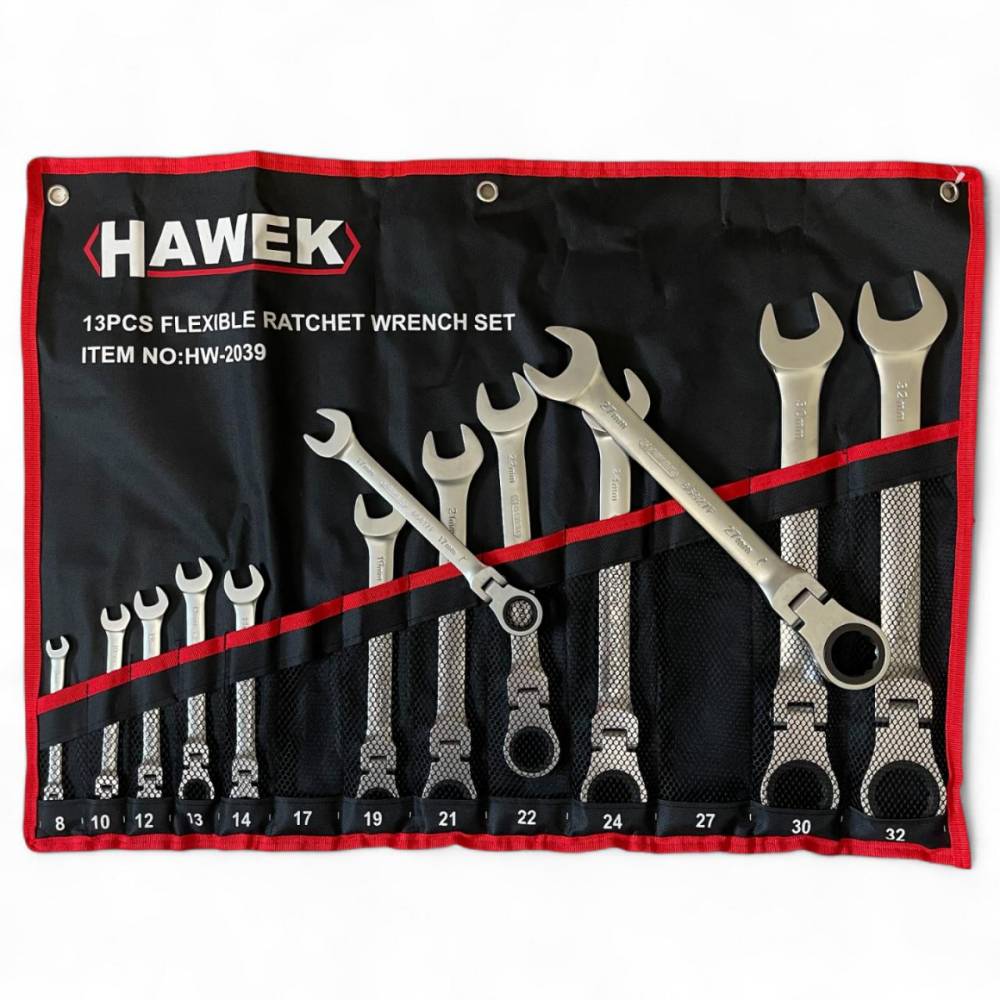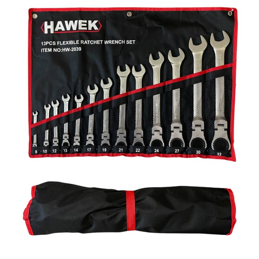 Комплект звездогаечни тресчотни ключове с чупещо рамо 8-32 мм 13 части HAWEK