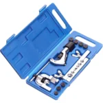 Конусната дъска осигурява прецизно и равномерно разширяване под ъгъл 45°, което гарантира надеждно и плътно съединение на тръбите. Комплектът включва различни адаптери, съвместими с най-често използваните размери тръби, както и резачка за чисто и точно отрязване.