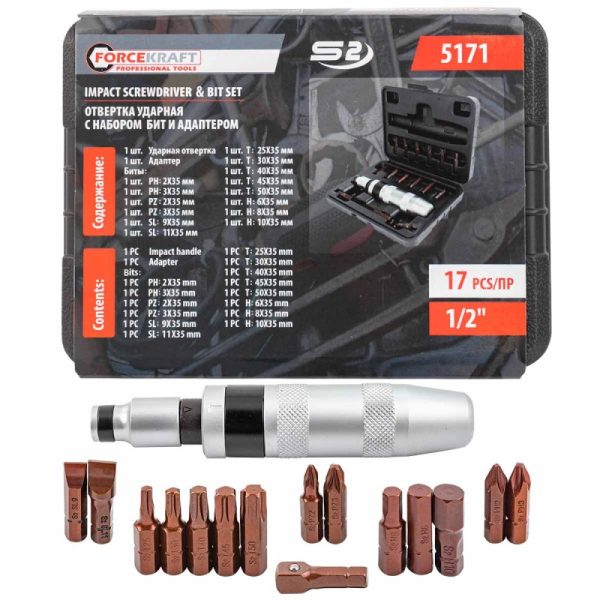 Комплект ударна отвертка с накрайници 17 части FORCEKRAFT