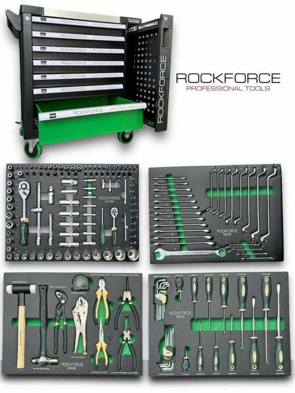 Професионален шкаф с инструменти RockForce 172 части е перфектно допълнение към оборудването на всеки автосервиз или работилница. Конструкцията е изцяло метална и гарантира по-дълъг период на експлоатация. Шкафа съдържа разнообразни инструменти, които са необходими за всеки майстор или автомонтьор. Той разполага с 7 чекмеджета, 4 от които са пълни с различни инструменти. Освен това отстрани има допълнителен шкаф, предназначен за съхранение на масла и туби. Оборудван е с 4 колела, които улесняват преместването му в пространството без излишни усилия. Шкафът е изключително удобен и улеснява работата на всеки.